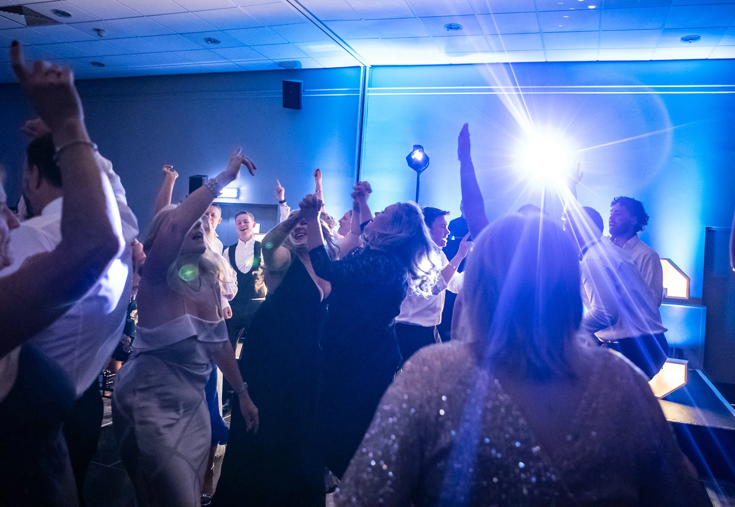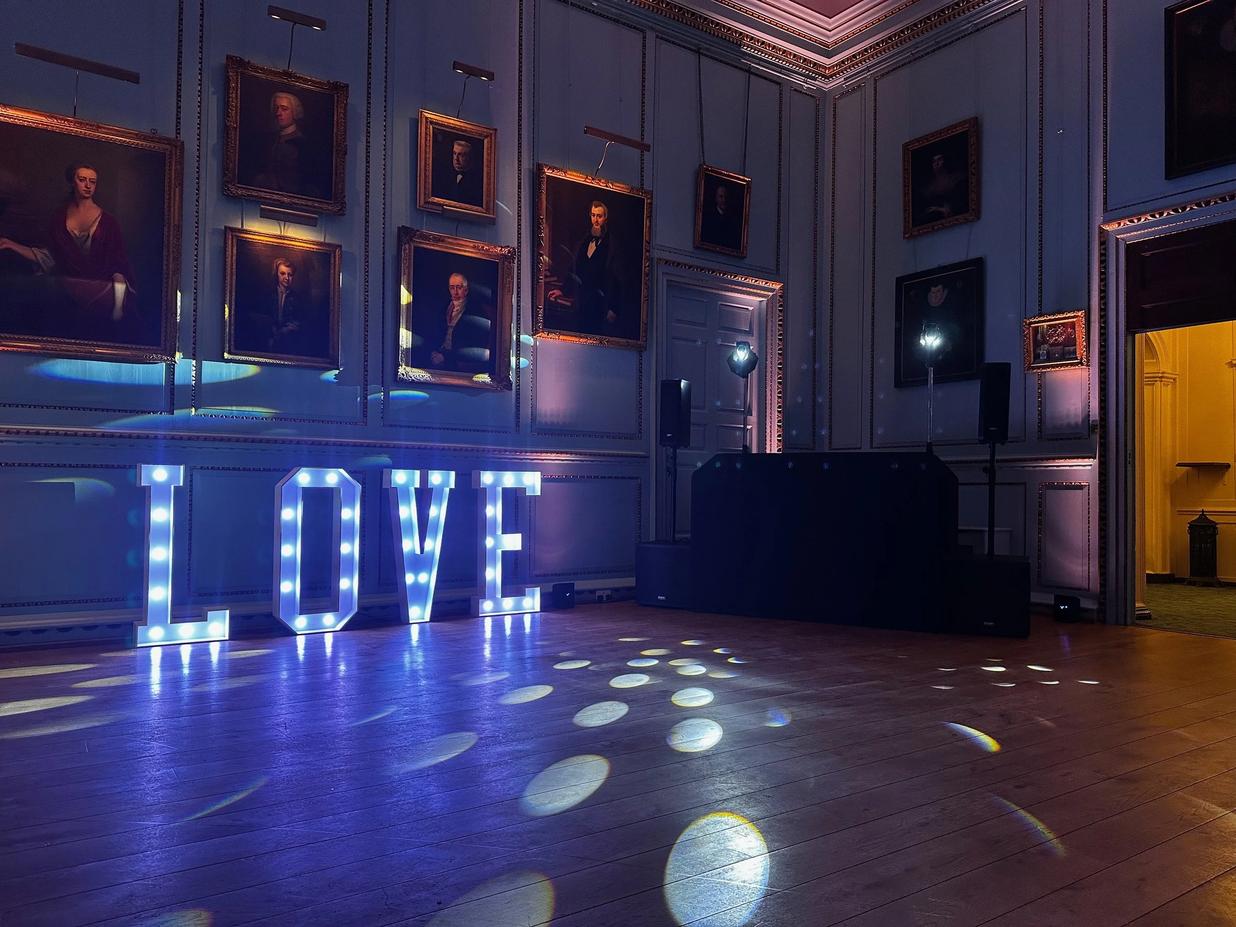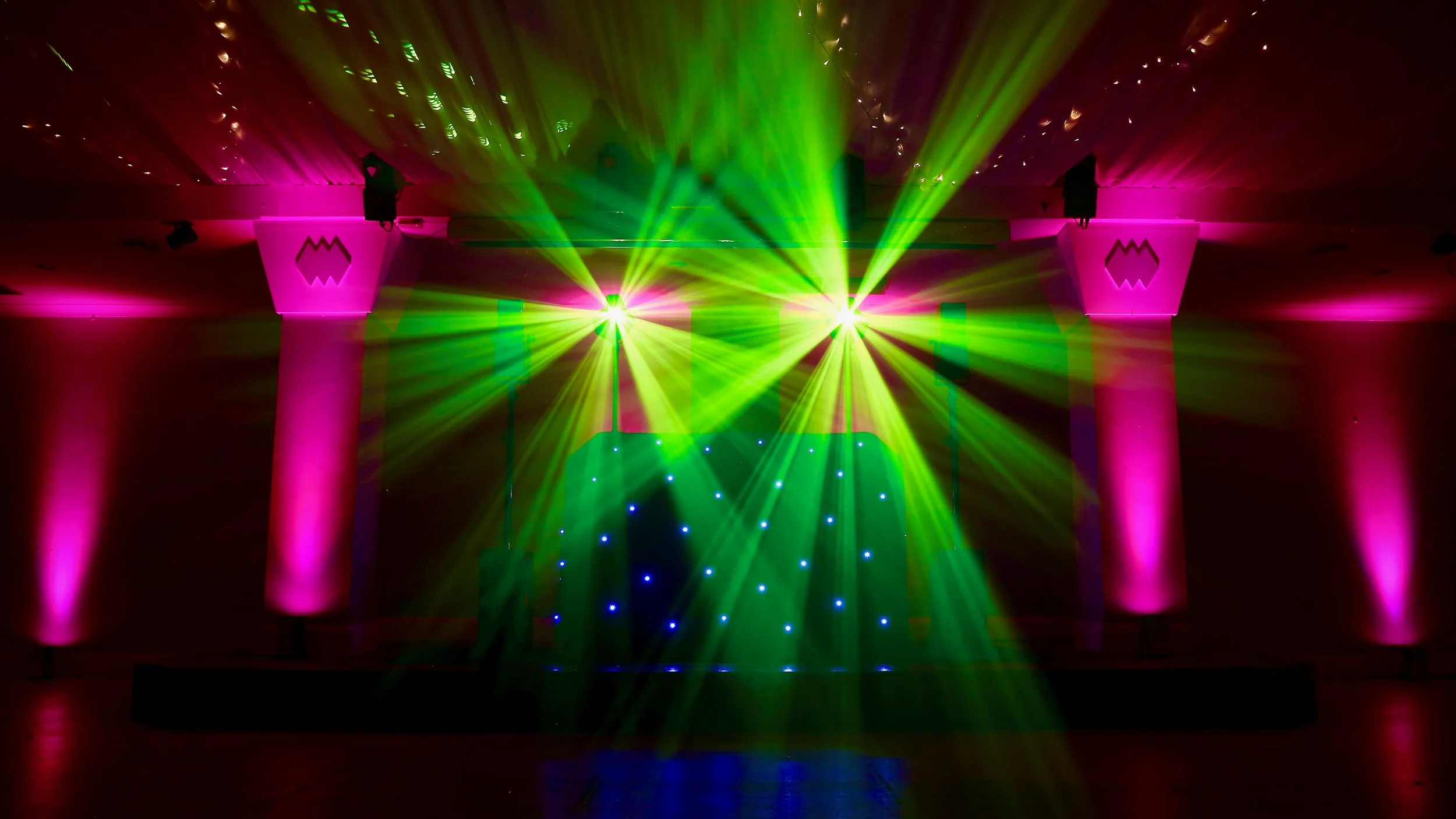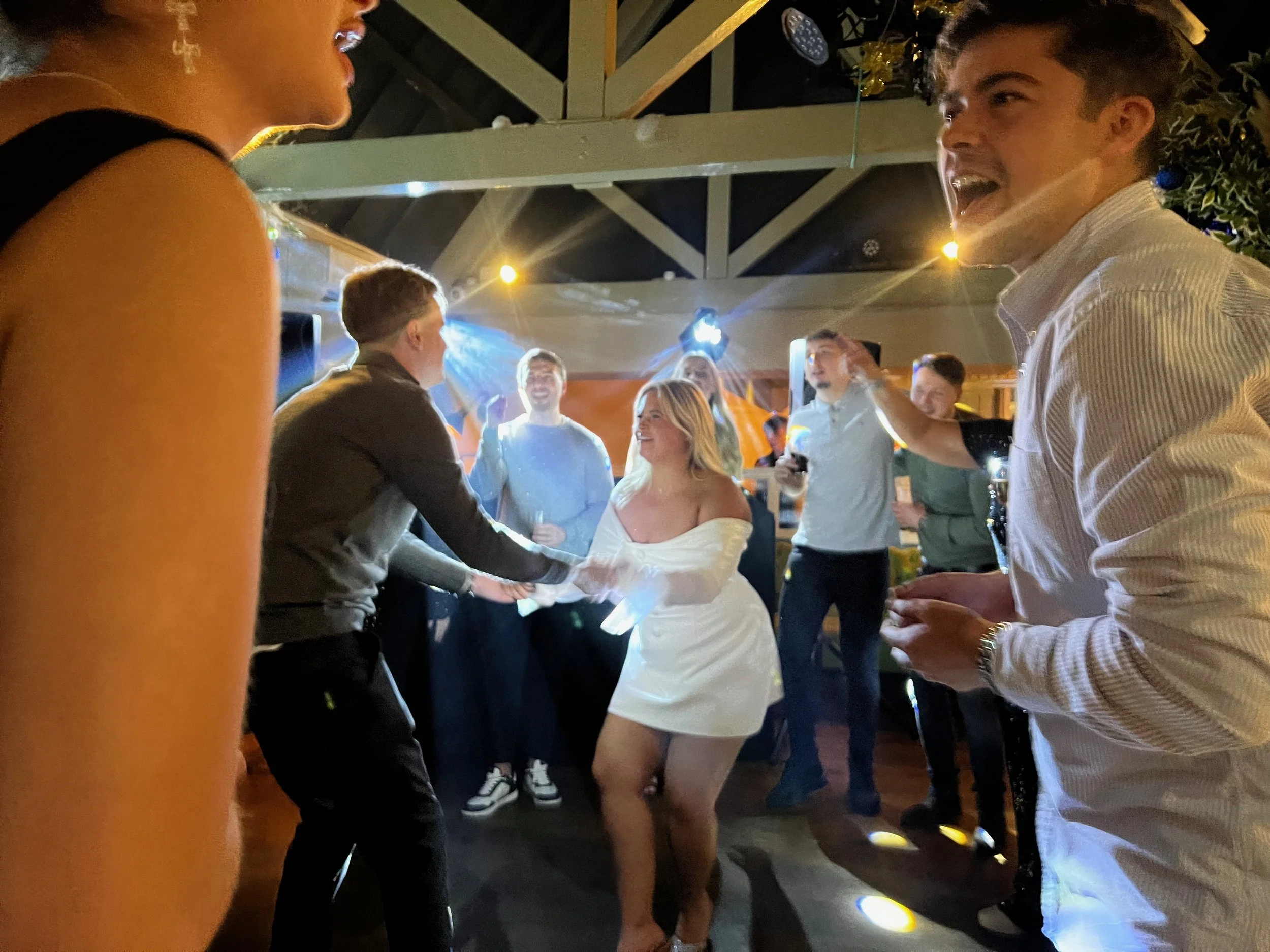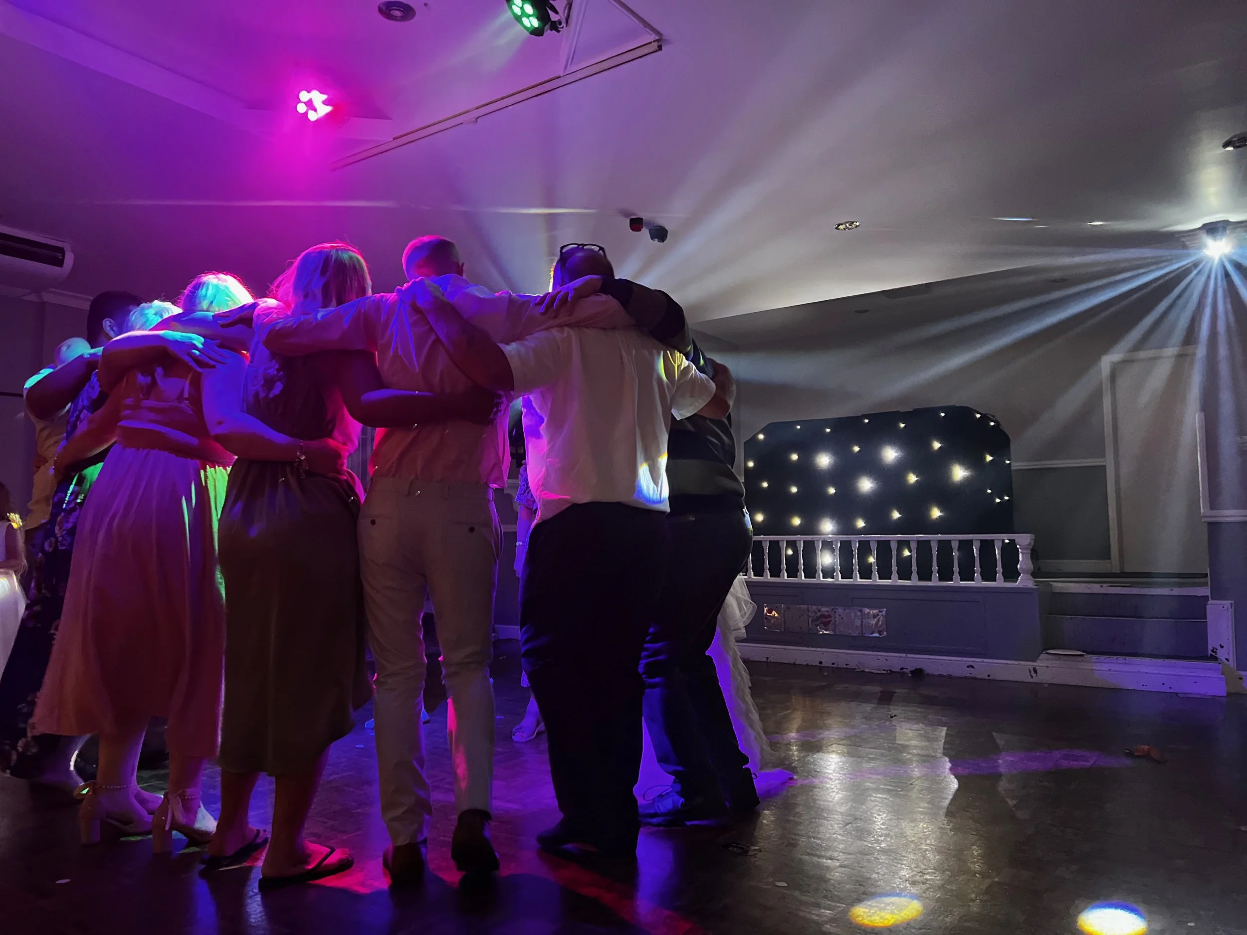This package includes a high-quality sound system capable of handling up to 300 guests, along with two moving-effect lights and four uplights behind the DJ setup — all fully computer-controlled (no harsh flashing during your first dance 😅 or mismatched colours at your corporate event). You’ll also get a choice of a sleek black or starlit 6ft DJ booth — and, of course, one of our top-tier DJs bringing the fun, energy, and music your guests actually want to hear.